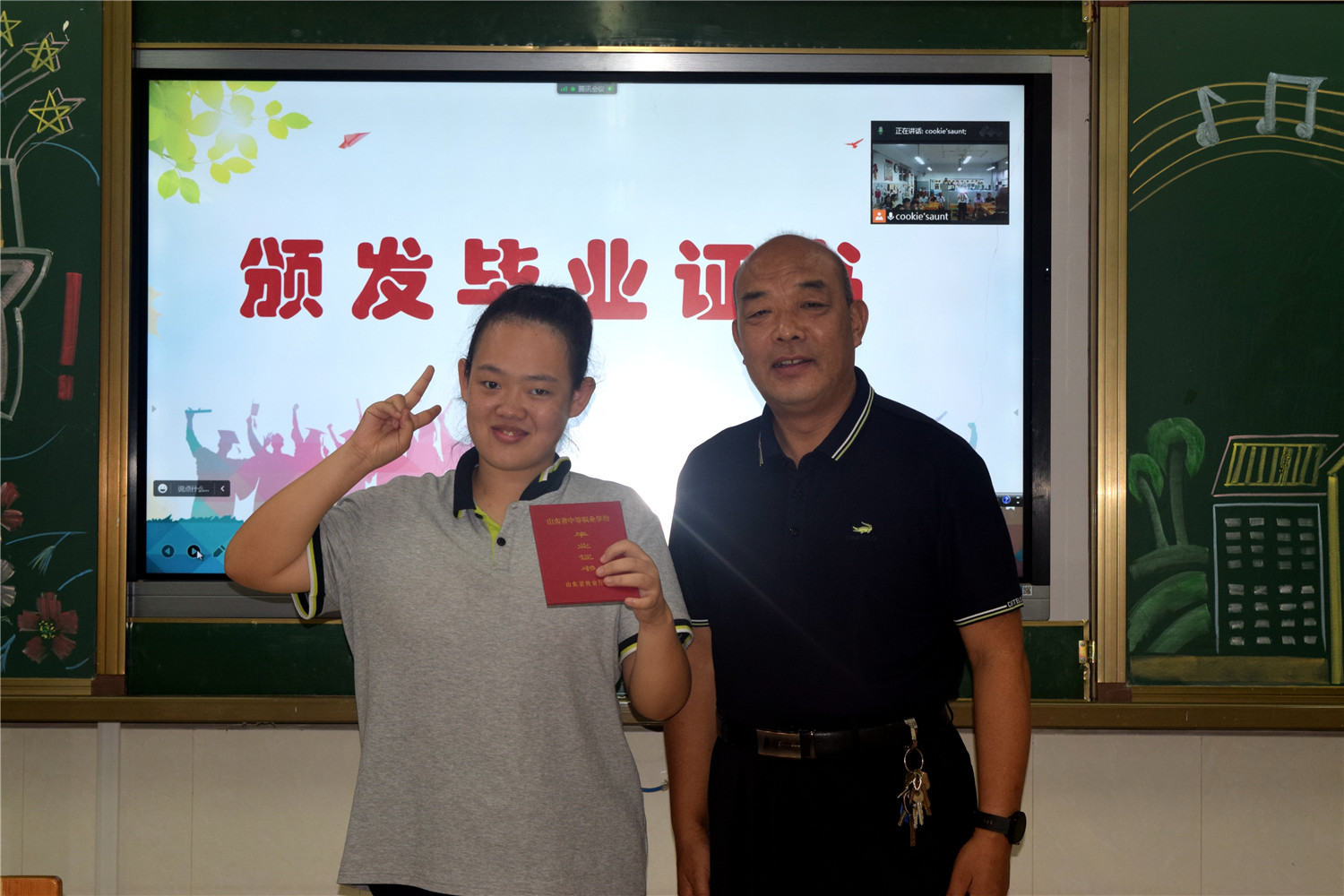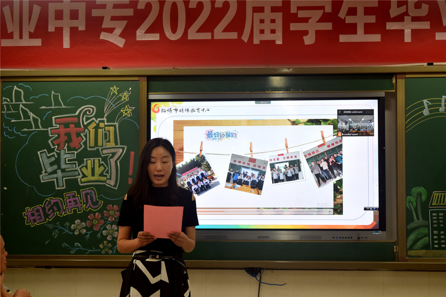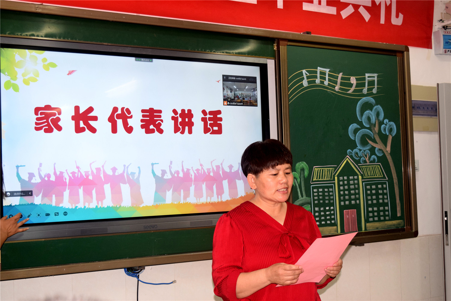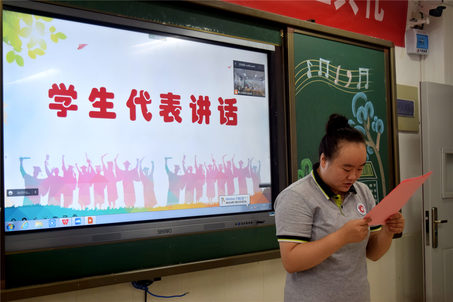 班主任代表鞏立君發(fā)言,她向即將畢業(yè)的學(xué)生送上了自己深深的祝福,言語(yǔ)間滿是對(duì)學(xué)生的不舍,希望同學(xué)們帶著“三顆心——孝心、愛(ài)心、責(zé)任心”走向?qū)儆谧约旱男绿斓?,成為?duì)社會(huì)有用的人。