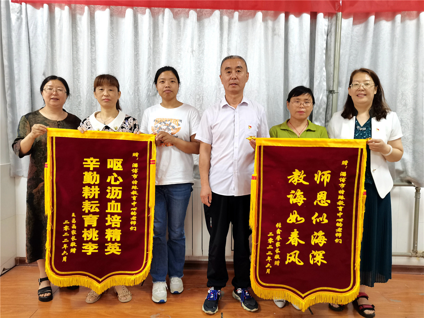 家長代表和學生代表依次發(fā)言,表達了對學校和老師們真摯的感謝,并向學校贈送了錦旗。
