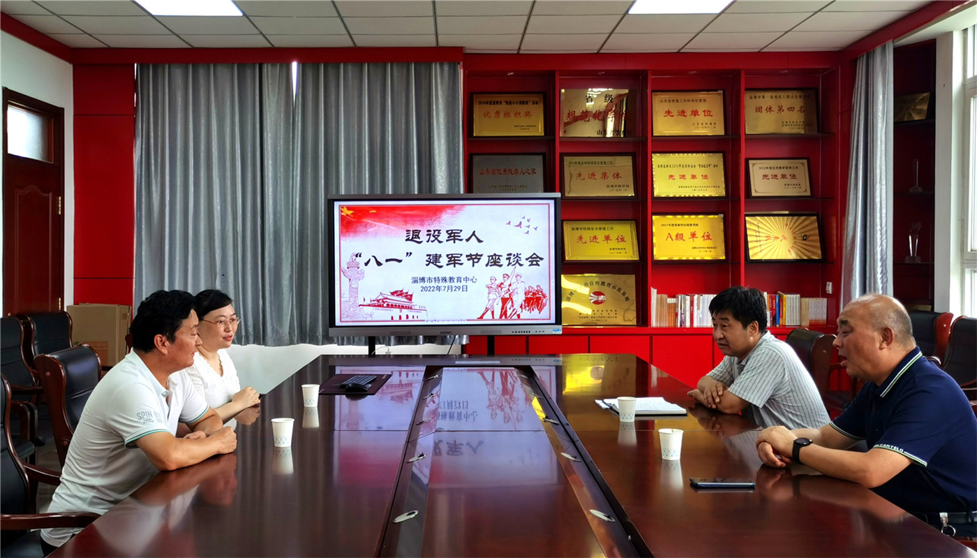 為慶祝中國人民解放軍建軍95周年,7月29日下午,淄博市特殊教育中心組織召開退役軍人“八一”建軍節(jié)座談會(huì)。學(xué)校黨總支書記高文龍、副書記孟祥友與退役軍人燕斌、孟婕兩位老師座談交流,進(jìn)一步營造“尊重退役軍人”的濃厚氛圍。座談會(huì)上,學(xué)校領(lǐng)導(dǎo)詳細(xì)了解了兩位老師的學(xué)習(xí)、工作、生活情況,衷心感謝他們?yōu)閷W(xué)校發(fā)展做出的貢獻(xiàn),對(duì)于他們?cè)诠ぷ髦惺冀K永葆軍人本色的優(yōu)秀品質(zhì)給予了高度評(píng)價(jià)。兩位老師一致表示,在今后的工作中,要以習(xí)近平新時(shí)代中國特色社會(huì)主義思想為指導(dǎo),繼續(xù)發(fā)揚(yáng)軍隊(duì)的光榮傳統(tǒng)和優(yōu)良作風(fēng),大力弘揚(yáng)淄博特教精神,立足本職,再接再厲,銳意進(jìn)取,埋頭苦干,為學(xué)校高質(zhì)量發(fā)展作出應(yīng)有貢獻(xiàn)。