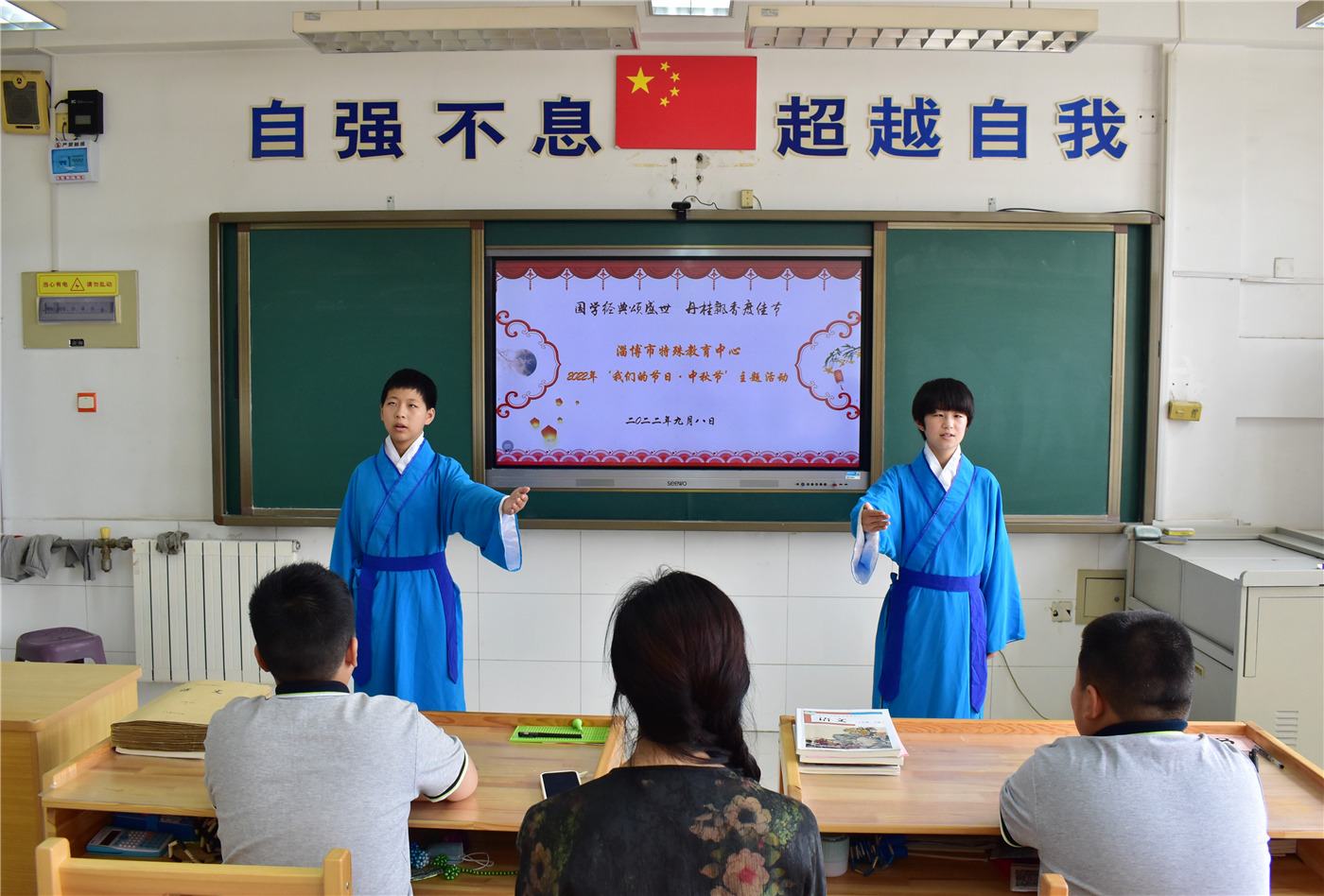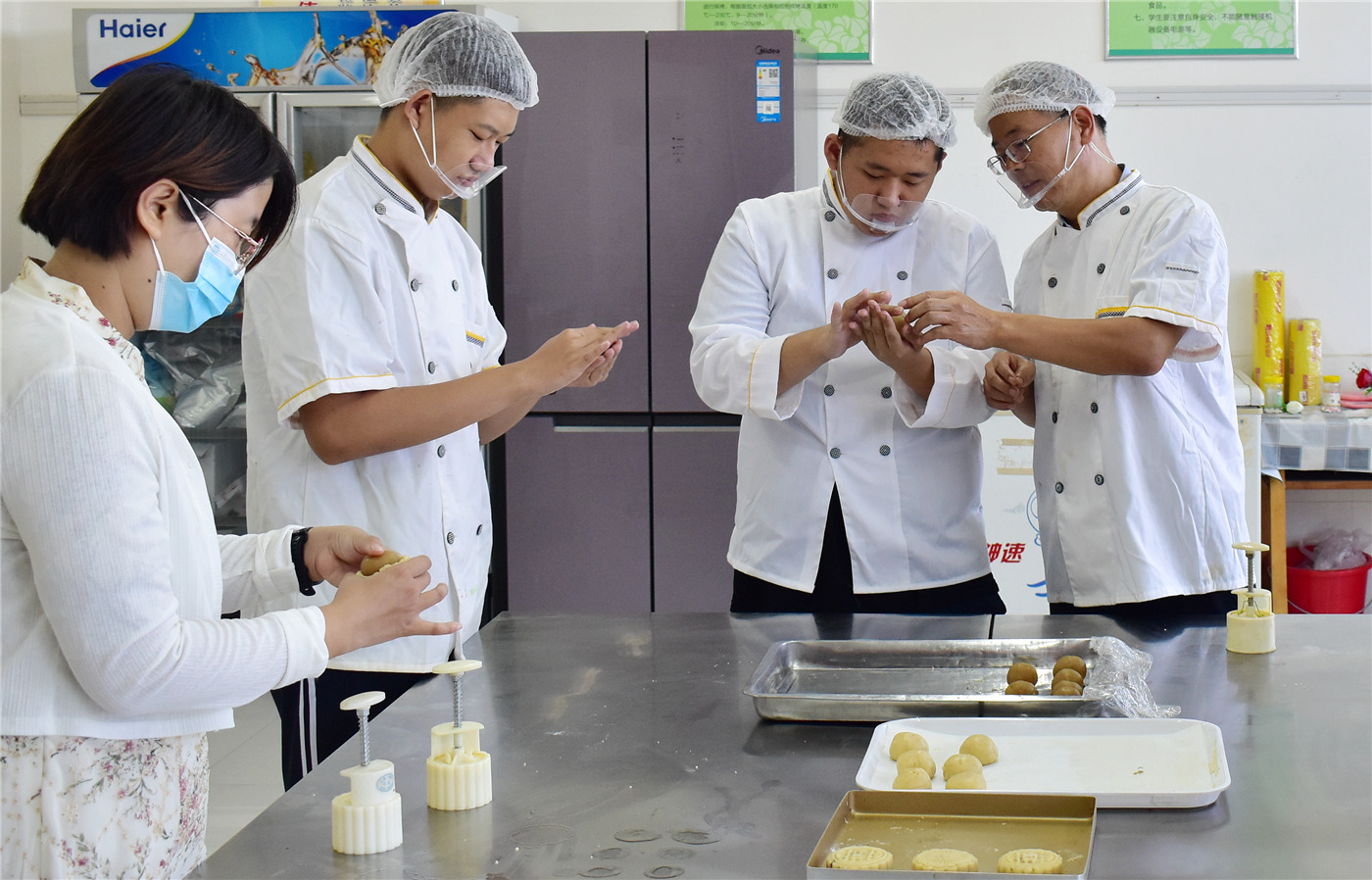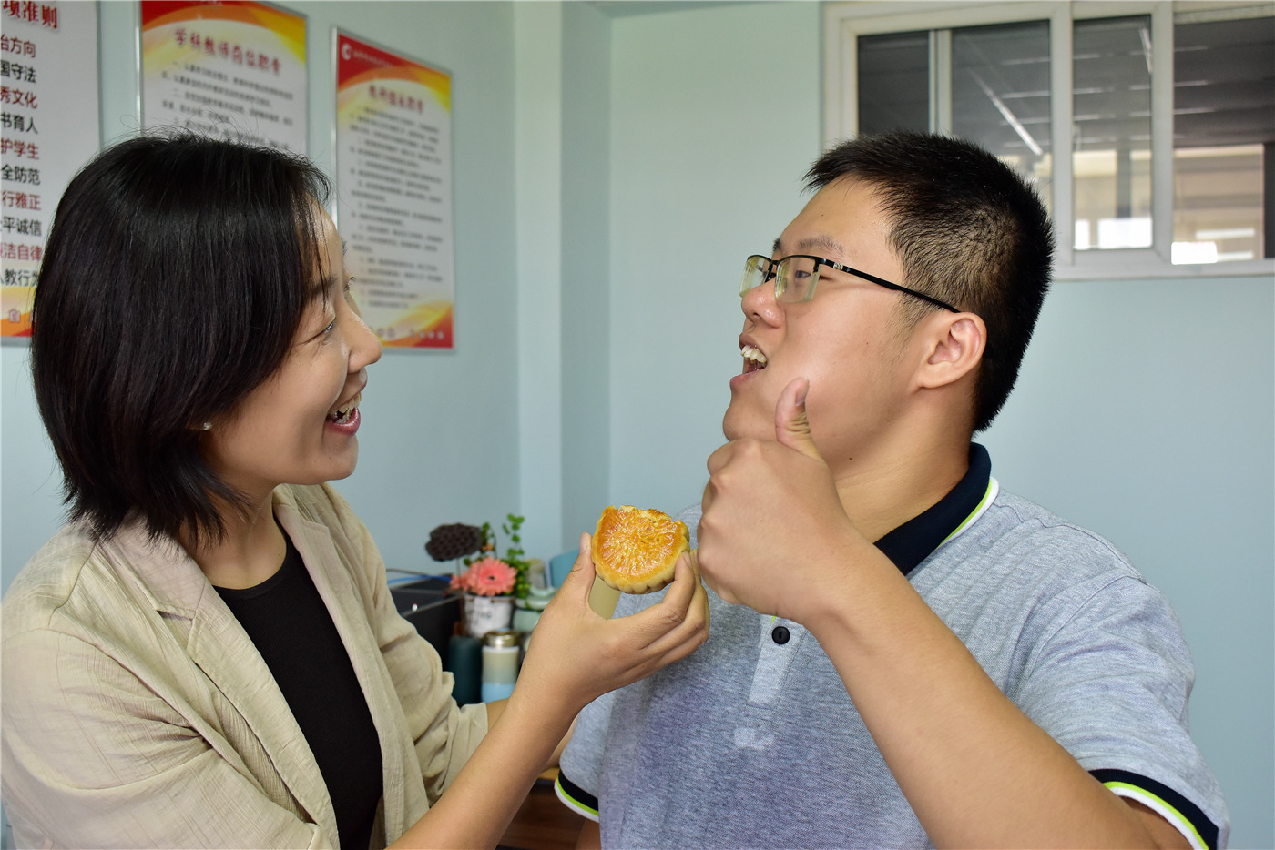 中秋節(jié)和教師節(jié)在2022年9月10日這天不期而遇,淄博市特殊教育中心新學年伊始的校園內處處洋溢著濃濃的“團圓”和“愛”的氛圍。在“雙節(jié)”前夕,學校根據(jù)聽障、視障、培智、康復、職教學生的不同特點,從傳承中華民族優(yōu)秀傳統(tǒng)文化,愛黨愛國教育,培育新時代文明家風、倡導社會和諧文明風尚等方面開展了主題鮮明、形式各異、豐富多彩的一系列活動。 學校職教烘焙專業(yè)的學生們在老師的帶領下,親手制作著月餅。老師一邊講解月餅的制作工序,一邊介紹中秋節(jié)的由來風俗。學生們在感嘆中國傳統(tǒng)節(jié)日文化博大精深的同時,更加專注認真,因為他們要用親手制作的月餅在教師節(jié)給老師們送上誠摯的祝福。你一口,我一口,唇齒間品嘗的不僅僅是象征團圓美滿的月餅,更是溫馨甜蜜濃濃的師生情。