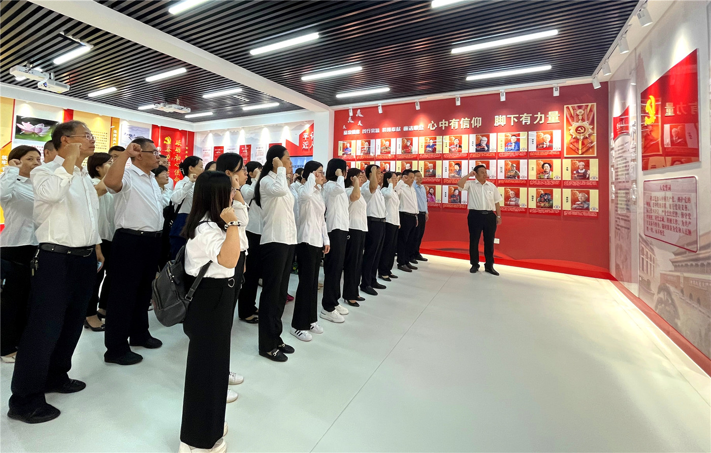 黨員們首先集體參觀了齊韻黃河文化展館八個展廳,以齊文化與黃河文化相互融合為背景,以時間為軸線,以治水興水文化元素為主線,了解了齊國治水興水探索和人民治黃的歷史成就。一件件文物、浮雕、瓷板畫等館藏,展現(xiàn)著黃河文化的歷史傳承和一代又一代“黃河人”為黃河建設(shè)及守護工作作出的杰出貢獻。隨后,在黨性淬煉中心,全體黨員重溫了入黨誓詞,參觀了黨史展覽,進行了黨性體檢。
