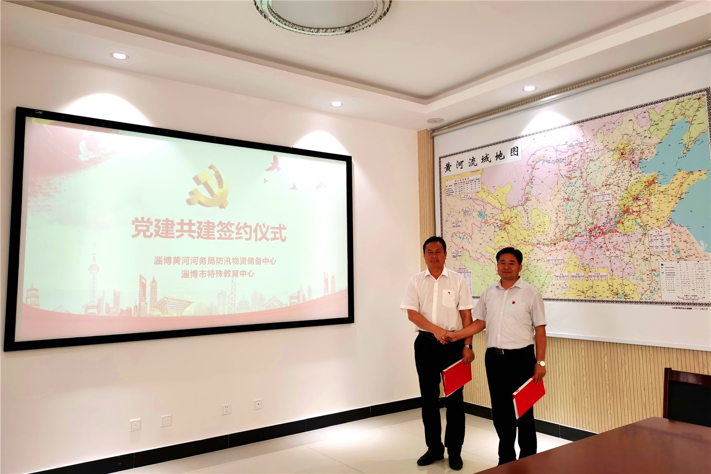 在現(xiàn)場,市特教中心與淄博黃河河務(wù)局防汛物資儲備中心開展了黨建共建活動,雙方共同簽訂了《黨組織聯(lián)建共建協(xié)議》,共同約定以“促進協(xié)作、共謀發(fā)展”為目標,以“主題黨日+”為載體,圍繞共同開展一次黨建工作學習交流、共同開展一次業(yè)務(wù)交流提高、共同開展一次重溫入黨誓詞、共同組織一次實踐活動、共同開展一次現(xiàn)場教育等“五個一”活動,構(gòu)建“資源共享、黨建共做、優(yōu)勢互補、融合發(fā)展”的黨建工作新格局,有效推進“河地融合”發(fā)展。