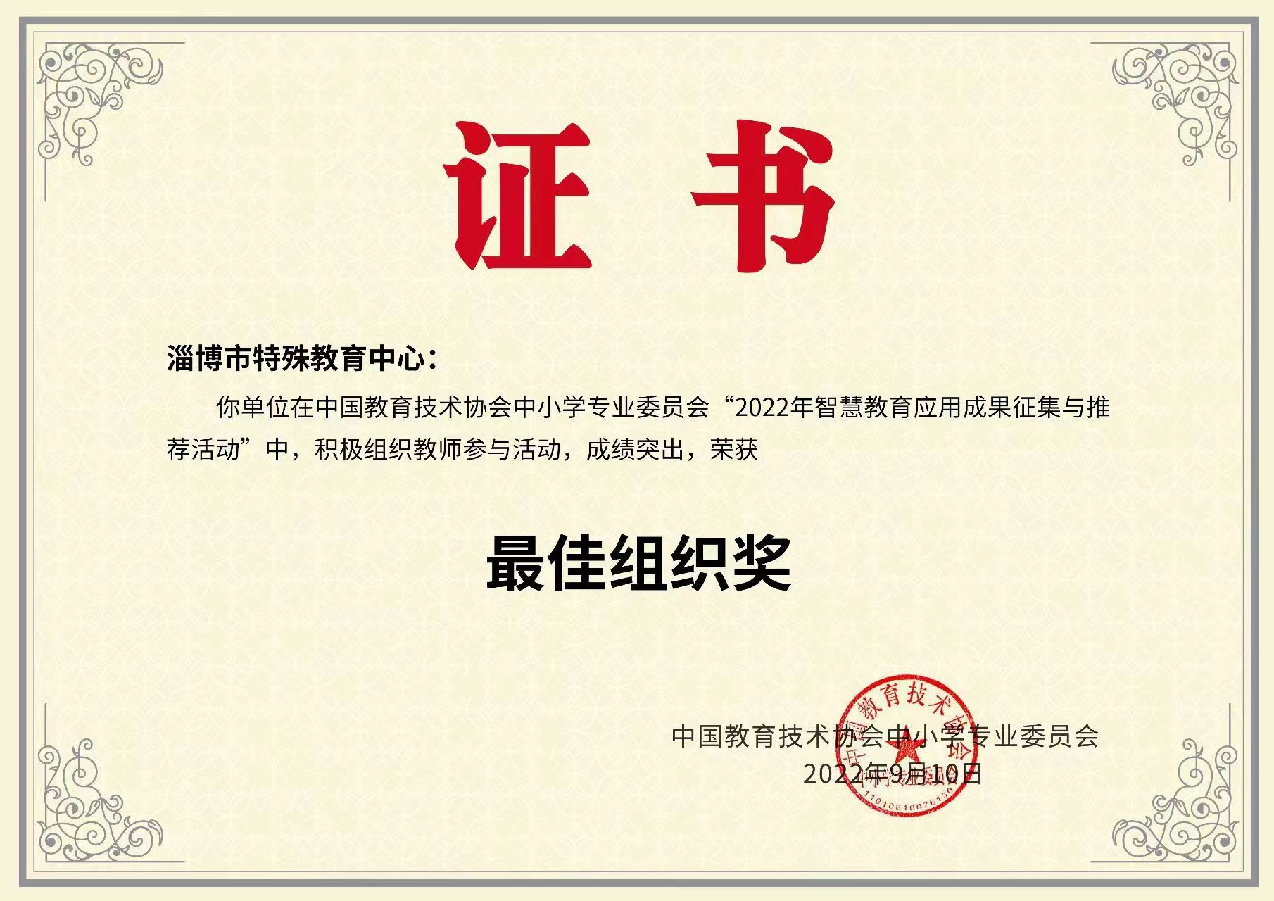 近日,從中國教育技術協(xié)會中小學專業(yè)委員會傳來捷報,淄博市特殊教育中心榮獲“2022 年智慧教育應用成果征集與推薦活動最佳組織獎單位”。