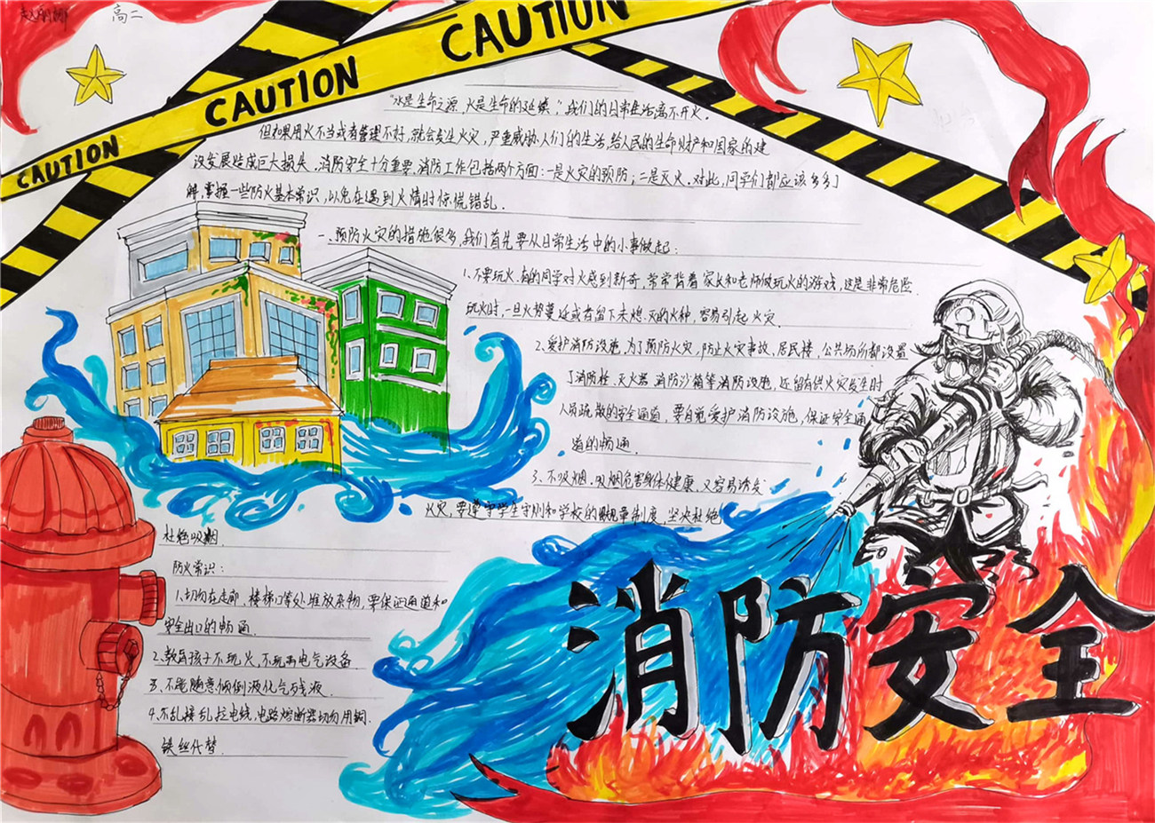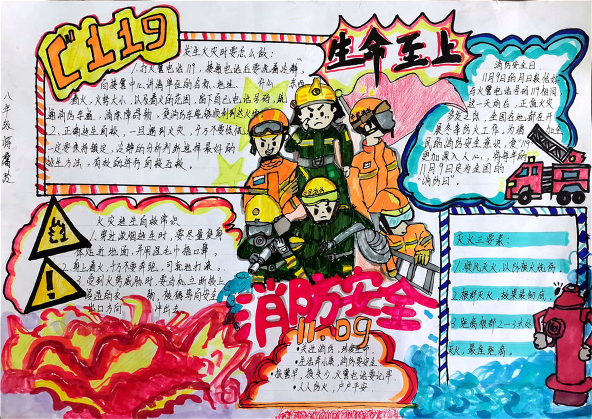 11月14日,各班召開了消防安全主題班會(huì)課。各班主任根據(jù)校園火災(zāi)的特點(diǎn),闡述了校園消防安全的重要性,介紹了常見火災(zāi)原因以及預(yù)防措施、發(fā)生火災(zāi)后如何逃生自救、滅火器的正確使用等消防安全常識(shí)。課后,同學(xué)們繪制了圖文并茂的手抄報(bào),真正讓消防安全知識(shí)入腦入心。
