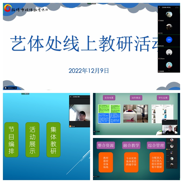 為進(jìn)一步提高學(xué)校藝體教師隊(duì)伍專業(yè)素質(zhì),保障藝體線上課堂教學(xué)的科學(xué)化、規(guī)范化和特色化,豐富學(xué)生居家學(xué)習(xí)生活,12月9日,淄博市特殊教育中心組織開(kāi)展了藝體線上教研活動(dòng)。