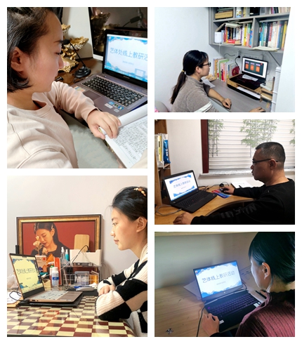 藝體教師首先結(jié)合近期線上教學(xué)活動(dòng)的開(kāi)展,講心得、說(shuō)亮點(diǎn)、談反思,對(duì)各自的教學(xué)進(jìn)度、課堂效率及教學(xué)課件等進(jìn)行了分享、展示。老師們對(duì)好的想法和建議,一起探討思路,對(duì)存在的問(wèn)題與疑惑,一起尋求解決,大家交流討論、互學(xué)互鑒,讓云端教研有聲有色,氛圍濃郁。