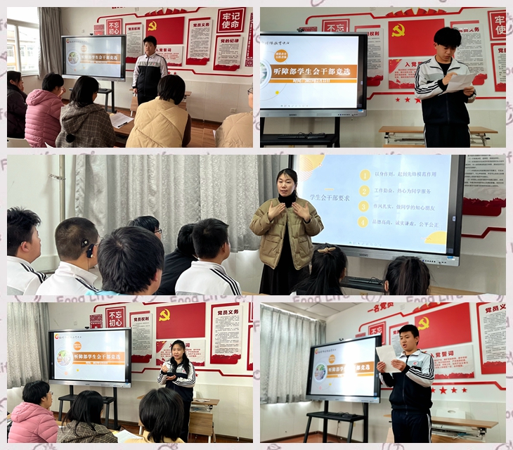 參加此次競(jìng)選的候選人依次上臺(tái)進(jìn)行了演講,逐一介紹了自己的經(jīng)歷和優(yōu)勢(shì)以及對(duì)競(jìng)選崗位的理解和規(guī)劃,表達(dá)了努力做好學(xué)生會(huì)工作的信心和決心。整個(gè)競(jìng)選過(guò)程氣氛緊張熱烈,各候選人熱情飽滿、真誠(chéng)自信,展現(xiàn)出特教學(xué)子甘于奉獻(xiàn)、勇于擔(dān)當(dāng)、敢于爭(zhēng)先的精神風(fēng)貌。隨后,由班主任、教師代表、學(xué)生代表組成的評(píng)委們進(jìn)行了評(píng)分,選舉產(chǎn)生了新一屆學(xué)生會(huì)干部。最后,召開(kāi)了新一屆學(xué)生干部會(huì),聽(tīng)障部主任對(duì)學(xué)生會(huì)各部門的權(quán)責(zé)進(jìn)行了分工,明確了學(xué)生會(huì)干部的職責(zé),并對(duì)下一步的工作進(jìn)行了具體部署,要求全體學(xué)生會(huì)干部嚴(yán)于律己、恪盡職守、團(tuán)結(jié)協(xié)作、公平公正,扎實(shí)做好學(xué)生會(huì)各項(xiàng)工作,做好表率,當(dāng)好先鋒,熱情為同學(xué)服務(wù)。