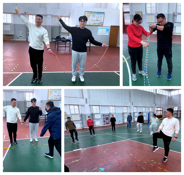 講座結(jié)束后,體育教師們來到體育館,對講座內(nèi)容進行集體學練,通過親身試跳、相互交流,共同探討適宜特需學生學習鍛煉的跳繩類別和形式,為接下來的教學開展提供思路、打好基礎(chǔ)。
