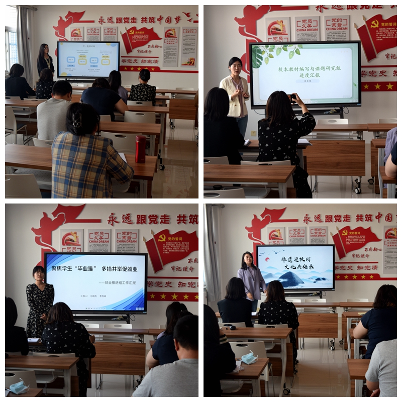 就業(yè)安置與指導(dǎo)組以“聚焦學(xué)生就業(yè)難,多措并舉促發(fā)展”為重點(diǎn),就近期開展的校企合作對(duì)接、社區(qū)就業(yè)調(diào)研、居家就業(yè)追蹤進(jìn)行了匯報(bào)。以國家政策為依據(jù),努力拓寬企業(yè)就業(yè)、社區(qū)就業(yè)、居家就業(yè)等多種就業(yè)形式,以期給學(xué)生提供更多的就業(yè)支持與幫扶。