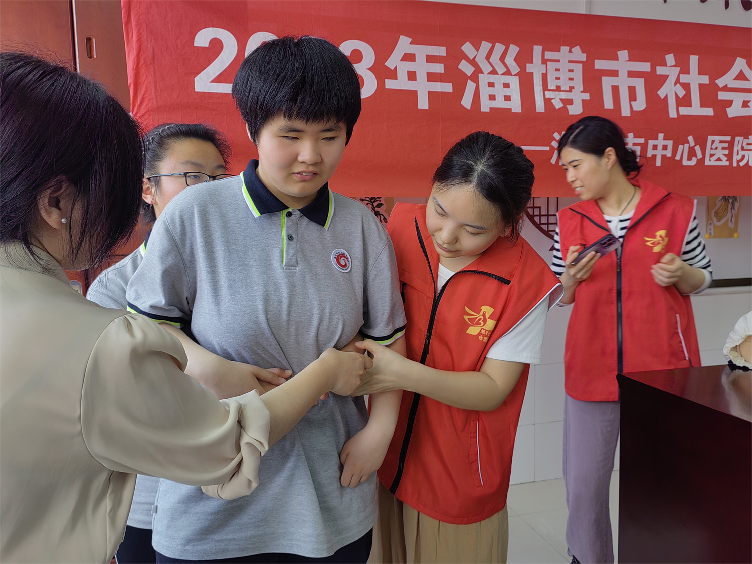 為幫助特殊學(xué)生了解和掌握急救知識和技能,關(guān)鍵時刻能提高自救和互救能力,5月29日下午,淄博市特教中心特邀市中心醫(yī)院手術(shù)麻醉科的杜林杰等三位醫(yī)生,在9號樓福佑中醫(yī)堂開展中醫(yī)堂第一講——“心肺復(fù)蘇應(yīng)急救護(hù)”公益講座活動。