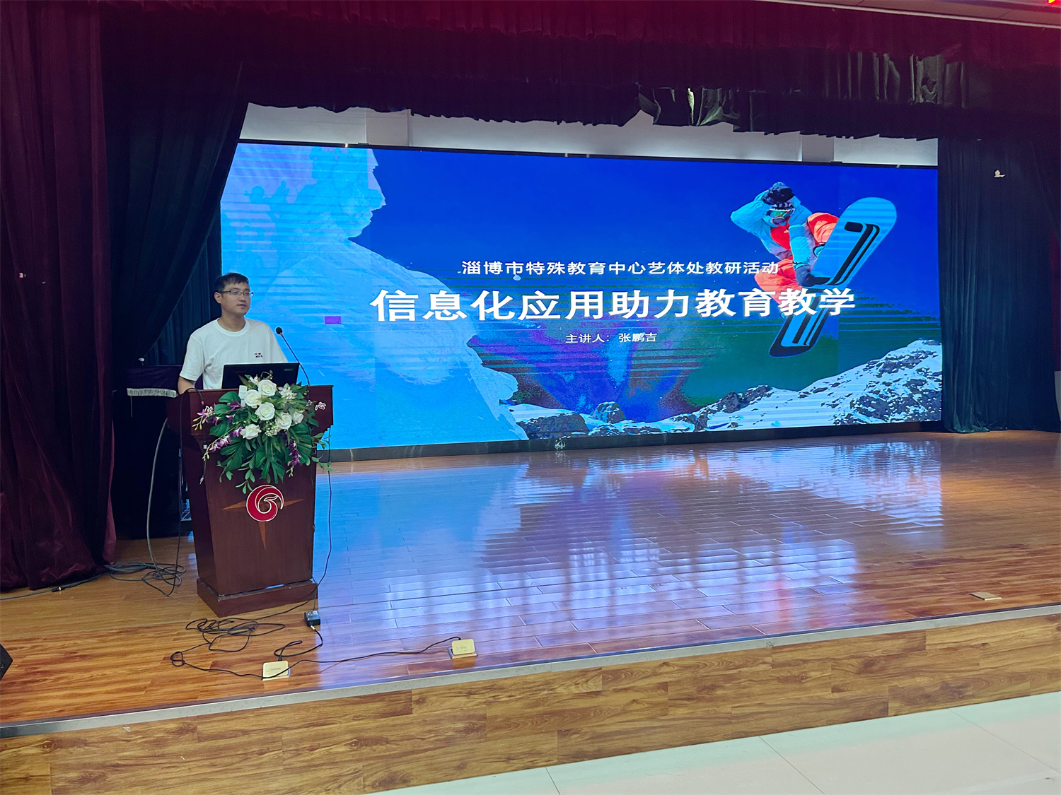 為提升學校藝體教師信息技術應用水平,推動信息技術與教育教學深度融合,充分發(fā)揮淄博市融合教育辦學集團平臺作用,6月7日,淄博市特殊教育中心“藝彩薈萃”第四期,邀請了淄博市融合教育辦學集團學校——高新區(qū)第二小學張鵬吉老師,為藝體教師進行信息技術應用專題講座。