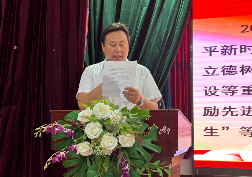分管學(xué)生德育工作副校長(zhǎng)杜建博主持會(huì)議并對(duì)一學(xué)年學(xué)校教育教學(xué)工作進(jìn)行了簡(jiǎn)要總結(jié)。學(xué)校黨委副書記李善軍宣讀表彰決定并代表學(xué)校黨委向獲得表彰的同學(xué)們表示祝賀。學(xué)校領(lǐng)導(dǎo)班子成員及部分優(yōu)秀教師代表為評(píng)選出的優(yōu)秀學(xué)生代表頒獎(jiǎng)。