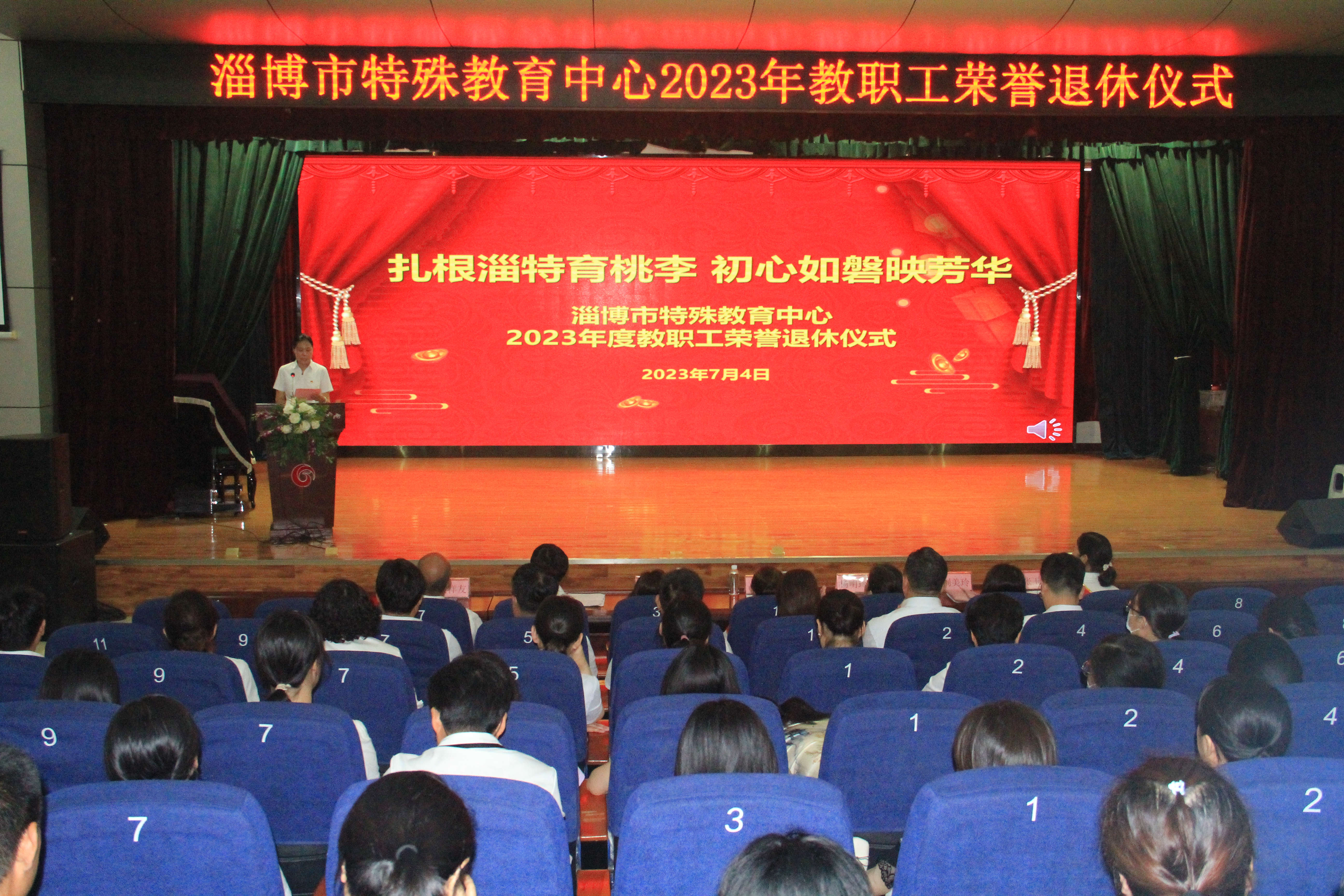 ?歲月留痕,芳華染墨。為祝賀我校2023年度第一批教職工光榮退休,7月4日,淄博市特教中心在學(xué)校博愛禮堂隆重舉行了以“扎根淄特育桃李 初心如磐映芳華”為主題的2023年教職工榮譽(yù)退休儀式。儀式由學(xué)校工會主席王芳同志主持,全體教職工參加了本次儀式。