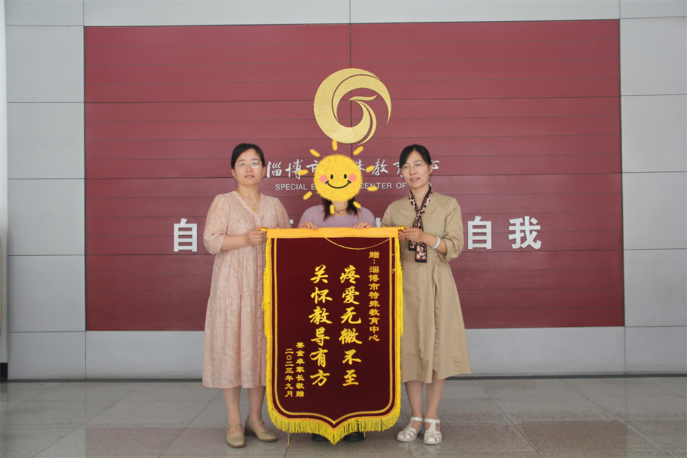 9月15日,送教學(xué)生家長專程趕來學(xué)校,滿懷感恩之心贈(zèng)送題有“疼愛無微不至,關(guān)懷教導(dǎo)有方”的錦旗,以此感激學(xué)校對(duì)學(xué)生的細(xì)心培育,感恩送教老師們的辛勤付出。