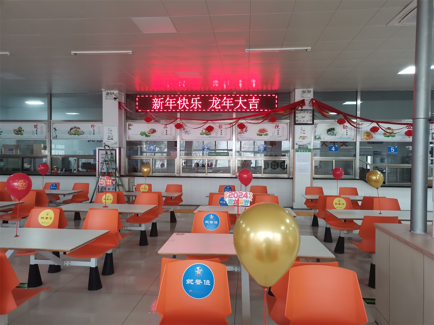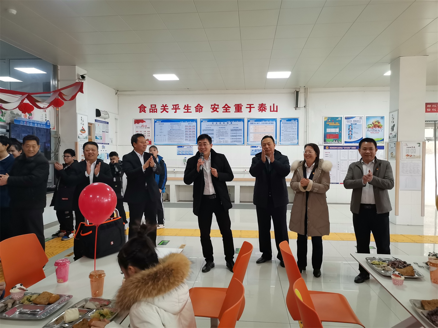 演出結(jié)束后,學(xué)校領(lǐng)導(dǎo)班子到食堂參加節(jié)日慶?;顒?dòng),對就餐師生致以節(jié)日的問候、送上美好祝愿。學(xué)校食堂提前籌劃活動(dòng),設(shè)計(jì)食譜、布置環(huán)境、營造節(jié)日氛圍,還為學(xué)校師生精心準(zhǔn)備節(jié)日蛋糕,祝愿生活甜如蜜,事事順心意。