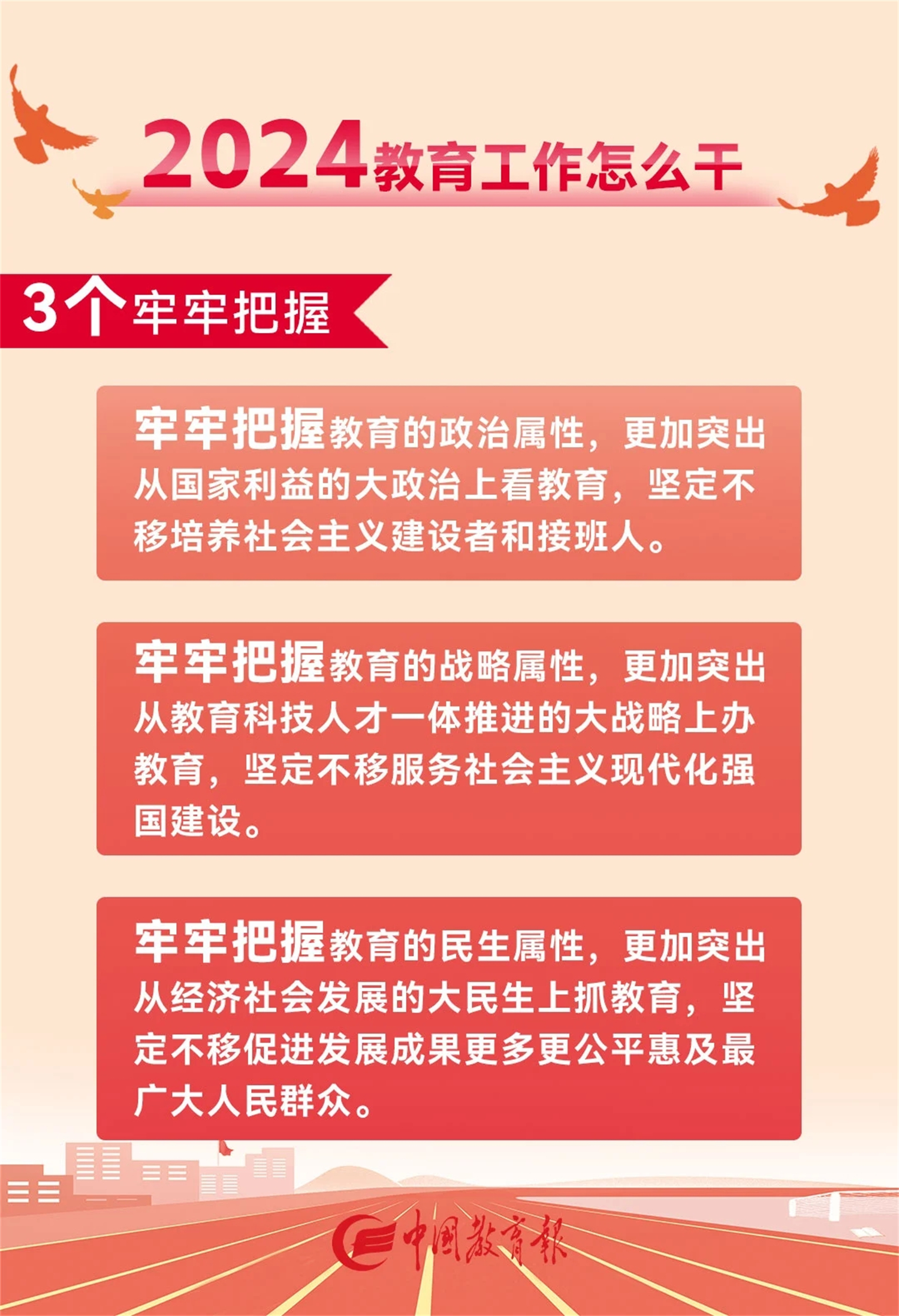 ?1月11日至12日,2024年全國教育工作會議在京召開。會議緊緊圍繞深入學(xué)習貫徹黨的二十大精神和習近平總書記在中央政治局第五次集體學(xué)習時的重要講話精神,是建設(shè)教育強國、推進改革發(fā)展的部署會、交流會。一起來看會上說了啥——