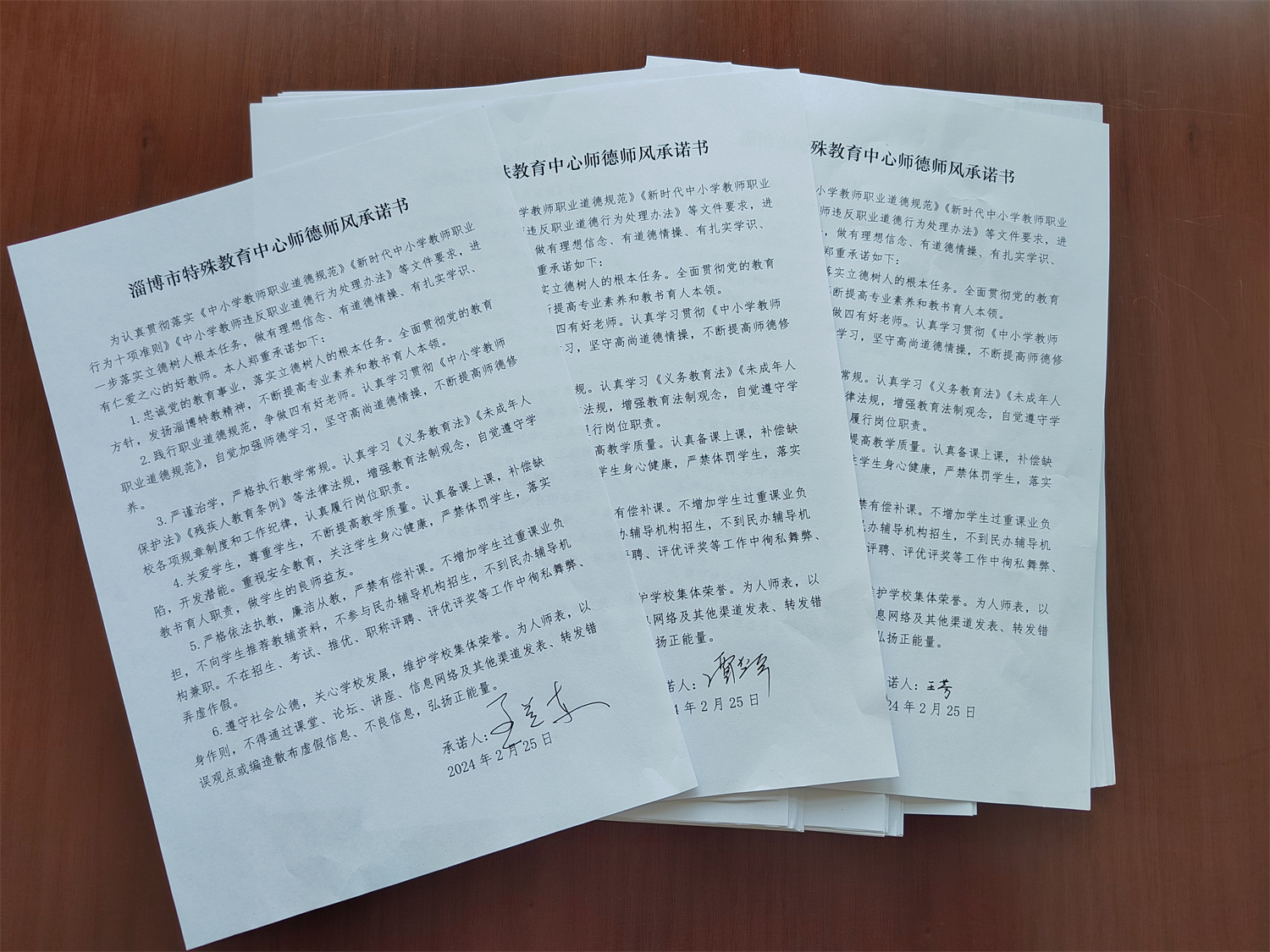 會(huì)上,全體教職工觀看了山東省教書(shū)育人楷模劉靜靜老師的教學(xué)事跡,學(xué)習(xí)她研盡丹心、守望花開(kāi),幾十年如一日,以教育的愛(ài)心,點(diǎn)亮特殊兒童的希望,通過(guò)師德榜樣的引領(lǐng),自覺(jué)淬煉師德師風(fēng)。組織全體教職工簽訂了師德師風(fēng)承諾書(shū),強(qiáng)化師德教育內(nèi)涵,依法執(zhí)教,廉潔從教。