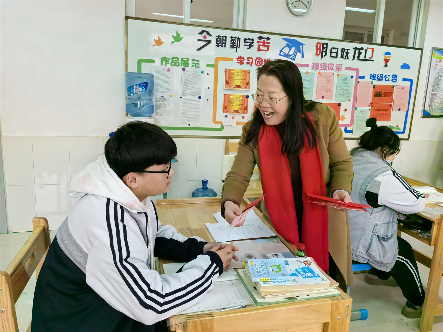 “謝謝王書記,謝謝賈校長(zhǎng)!太開心了!”原來紅包福袋里每張卡片上印有學(xué)校領(lǐng)導(dǎo)寄語:“龍年龘龘,身體棒棒!”“龍年心情好,天天沒煩惱!”“龍年福星高照,學(xué)習(xí)突飛猛進(jìn)!”“龍年學(xué)習(xí)進(jìn)步,開心快樂成長(zhǎng)!”這是學(xué)校領(lǐng)導(dǎo)對(duì)孩子們最好的祝福與鼓勵(lì),盈盈笑臉、帥氣擊掌、輕聲細(xì)語,學(xué)校領(lǐng)導(dǎo)用最溫暖的問候擁抱返校的孩子們!