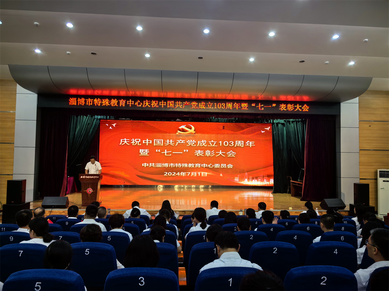 7月1日,淄博市特教中心在博愛禮堂舉行慶祝中國共產(chǎn)黨成立103周年暨“七一”表彰大會。會議由黨委副書記李善軍主持,全體黨員參加。