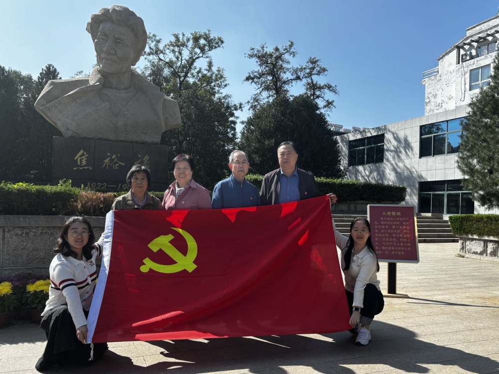 在焦裕祿紀念館,退休教職工們一起參觀紅色基地,重溫紅色記憶。一張張珍貴的照片,一件件飽經(jīng)風霜的遺物,生動地再現(xiàn)了焦裕祿同志的生平事跡,仿佛把大家?guī)У搅水斈杲乖5搮⒓痈锩鼞?zhàn)爭、帶領(lǐng)蘭考人民治理“三害”、戰(zhàn)天斗地的年代。在紀念館,大家深切感受到焦裕祿同志在艱苦生活、奮力戰(zhàn)斗中鑄就的“親民愛民、艱苦奮斗、科學求實、迎難而上、無私奉獻”的焦裕祿精神。在鮮紅的黨旗下,退休黨員同志們莊嚴地舉起右手,握拳宣誓,重溫入黨誓詞。