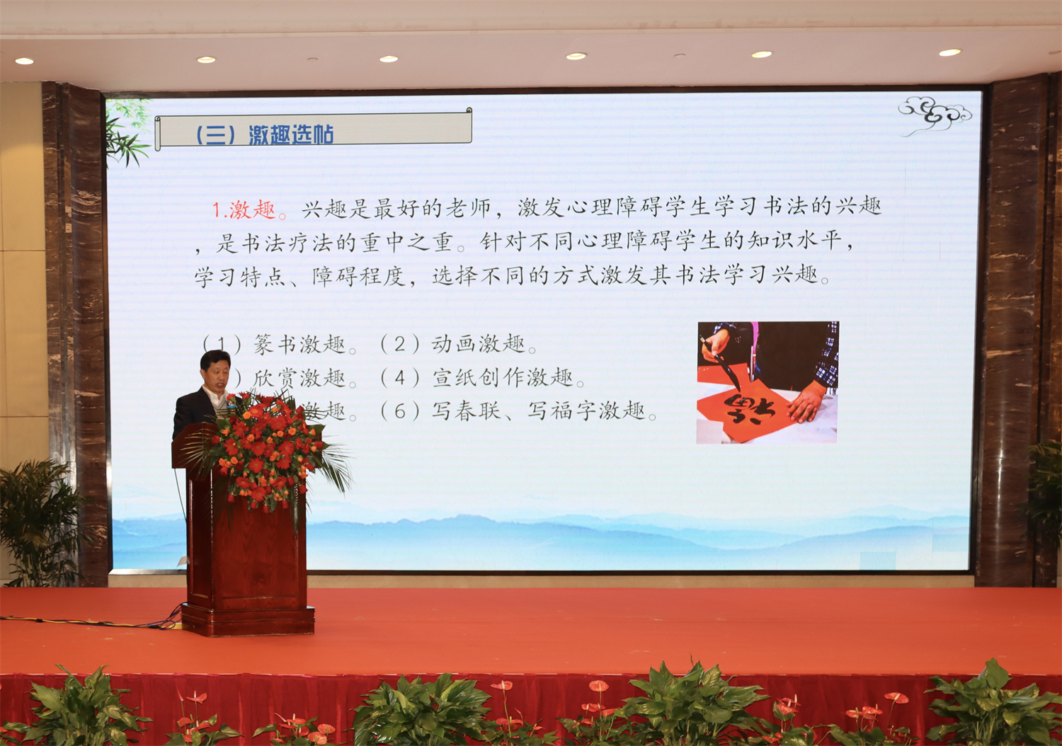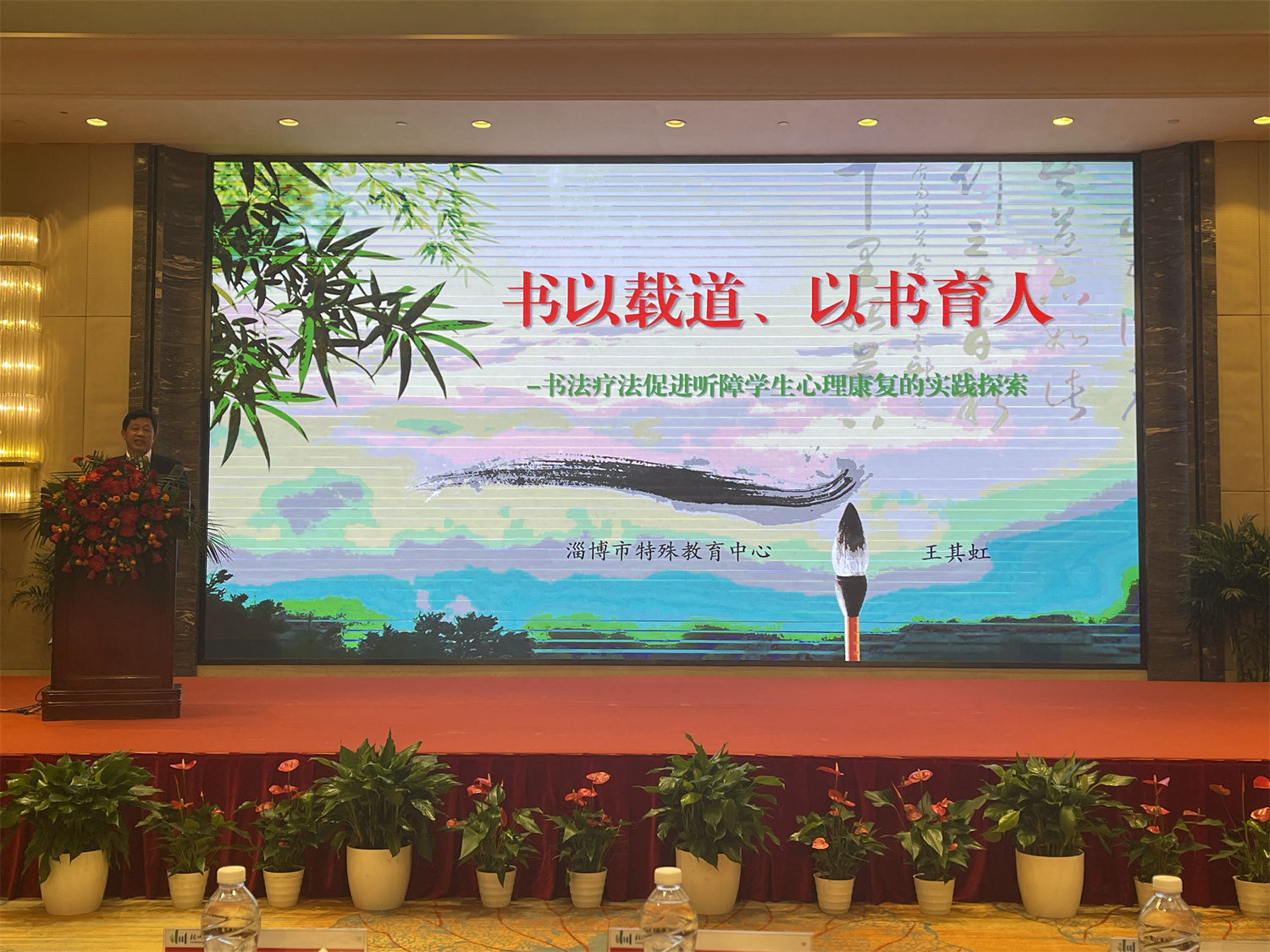 近日,2024年聽(tīng)障教育學(xué)術(shù)研討會(huì)暨聽(tīng)障學(xué)生貫通培養(yǎng)專(zhuān)題培訓(xùn)在浙江杭州召開(kāi),淄博市特教中心王其虹老師在會(huì)上以《書(shū)以載道 以書(shū)育人——書(shū)法療法促進(jìn)聽(tīng)障學(xué)生心理康復(fù)的實(shí)踐探索》為題作經(jīng)驗(yàn)交流。