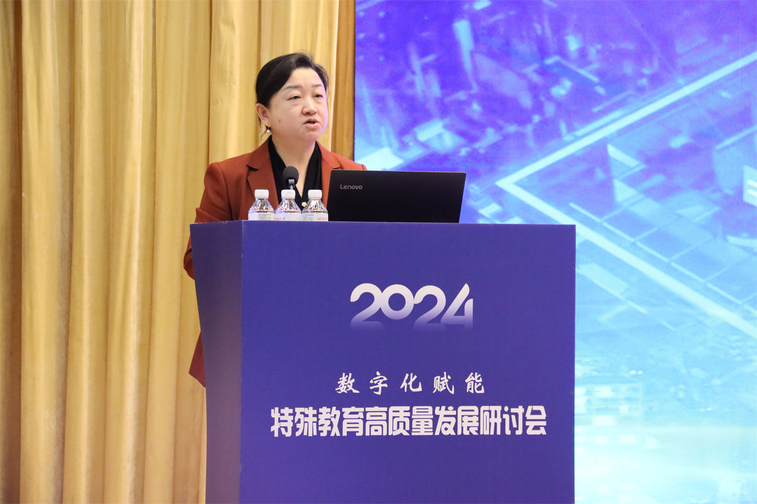 北京海淀特殊教育研究指導(dǎo)中心主任、北京健翔學(xué)校校長(zhǎng)、中國(guó)教育技術(shù)協(xié)會(huì)中小學(xué)專委會(huì)副秘書長(zhǎng)王紅霞作《特教學(xué)校變革與數(shù)字化發(fā)展》專題講座,分享了特殊教育學(xué)校在數(shù)字化轉(zhuǎn)型中的實(shí)踐與思考。她指出,面對(duì)學(xué)生差異大、類型多、障礙程度加重等挑戰(zhàn),學(xué)校要通過引入人工智能、數(shù)字教師等技術(shù)手段,提升教育服務(wù)質(zhì)量。要注重教師專業(yè)發(fā)展,構(gòu)建教研體系,強(qiáng)化家校社協(xié)同育人。特殊教育需緊跟國(guó)家政策導(dǎo)向,與國(guó)際接軌,堅(jiān)持立德樹人,推動(dòng)學(xué)校整體變革,為特殊學(xué)生創(chuàng)造幸福人生。