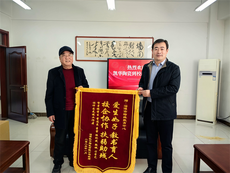 ?近日,淄博凱華陶瓷有限公司向?qū)W校贈(zèng)送錦旗,表達(dá)對(duì)淄博市特教中心在校企合作工作中貢獻(xiàn)的認(rèn)可與感謝。