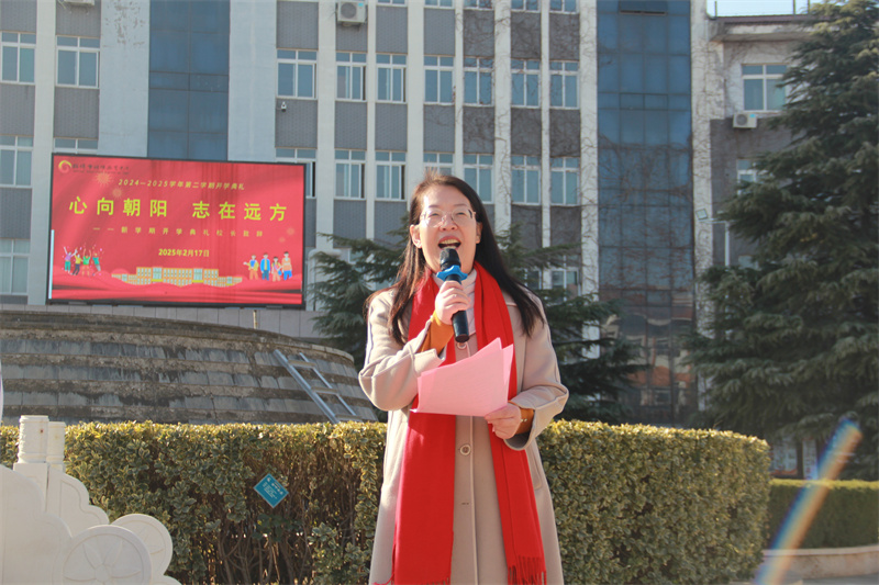 儀式上,學校黨委副書記、校長賈益芹以《心向朝陽 志在遠方》為題為典禮致辭,肯定了過去一年師生取得的成績,她表明這些成績的取得,離不開全體師生的共同努力和辛勤付出,也彰顯了特殊教育的無限可能與獨特魅力。