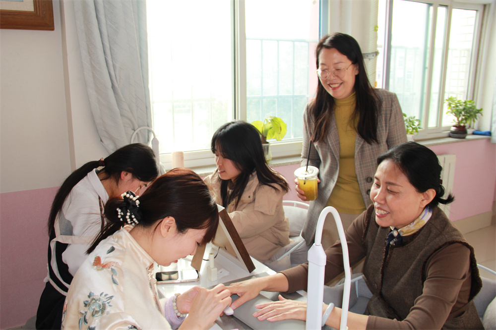 春日美甲屋,色彩與花樣交織,學生們仔細創(chuàng)作,春日美好躍然指尖,舉手投足中透露精致,她們的笑容在閃耀美甲映襯下愈發(fā)燦爛。