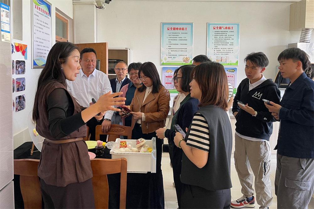 會后,考察團實地參觀了工藝美術、中醫(yī)按摩、食品加工、汽車美容與清洗等各功能室及職業(yè)教育教室,針對職業(yè)教育的專業(yè)課程設置、教室和功能室的結構布局、班級管理模式等進行詳細了解。期間,考察團現(xiàn)場觀摩了學生的刻瓷、陶藝、草編、掐絲琺瑯及非遺花饃等手工藝品,品嘗了學生現(xiàn)場制作的咖啡飲品,對學校在實踐教學與職業(yè)技能培養(yǎng)方面的成果表示充分肯定。學校豐富的專業(yè)設置、現(xiàn)代化的教學設備以及教師專業(yè)細致的工作態(tài)度也給交流團隊留下了深刻印象。同時,雙方還就職業(yè)教育課程開發(fā)、實習基地建設及師資培養(yǎng)等方面展開了深入交流探討。