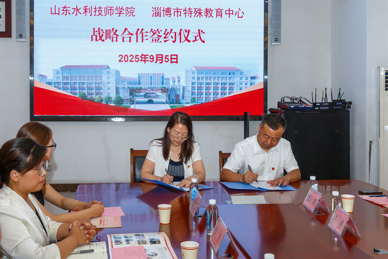 ?校校攜手暖人心,戰(zhàn)略合作啟新程。為促進(jìn)職業(yè)教育與特教教育融合發(fā)展,加強(qiáng)教育資源共享。9月5日上午,淄博市特教中心與山東水利技師學(xué)院聯(lián)合開展“以教育家精神鑄魂強(qiáng)師,譜寫教育強(qiáng)國建設(shè)華章”主題黨日活動(dòng)。學(xué)校黨委書記吳明剛主持活動(dòng),山東水利技師學(xué)院黨委書記萬斌、黨委副書記、院長邊敦典等一行17人到校參觀交流。