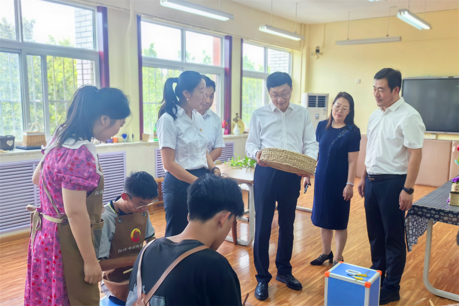王曉東書記實(shí)地察看了校園環(huán)境與文化建設(shè),認(rèn)真聽(tīng)取了學(xué)校發(fā)展歷程、辦學(xué)理念和教學(xué)模式介紹,詳細(xì)了解學(xué)校在教育教學(xué)、課程建設(shè)及職業(yè)教育等方面取得的成效。他先后走進(jìn)培智部、職教部,親切看望師生,與大家互動(dòng)交流,并送上節(jié)日祝福。期間,王曉東特別關(guān)注學(xué)生實(shí)習(xí)與就業(yè)情況,對(duì)學(xué)生們精心制作的草編、掐絲琺瑯等職教作品給予高度評(píng)價(jià)和充分肯定。