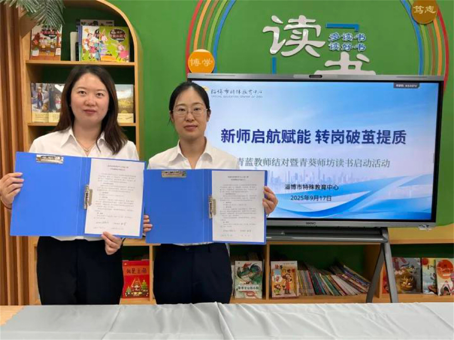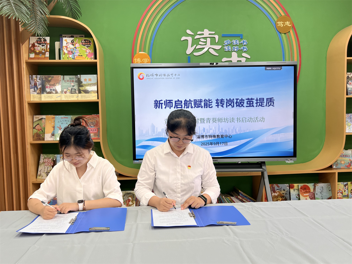 會(huì)上,教務(wù)處負(fù)責(zé)人宣讀了《淄博市特殊教育中心教師技能提升行動(dòng)方案》,并公布了師徒結(jié)對(duì)名單。新教師、轉(zhuǎn)崗教師結(jié)對(duì)雙方代表鄭重簽訂協(xié)議,許下共同進(jìn)步的承諾。會(huì)上還宣布了“青葵師坊”教師讀書活動(dòng)計(jì)劃,進(jìn)一步明確了讀書活動(dòng)的相關(guān)要求。