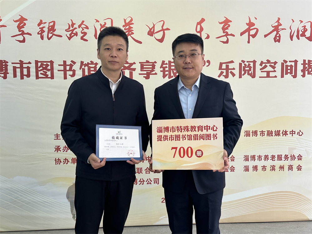 ?近日,淄博市圖書館“齊享銀齡”樂閱空間揭牌儀式隆重舉行。淄博市特教中心黨委委員、紀委書記翟冉受邀出席活動,代表學校向淄博市圖書館提供700冊大字版書籍。這些書籍字體清晰、類目豐富,為視障群體、老年讀者等搭建起無障礙閱讀的橋梁;淄博市圖書館學會理事長、淄博市圖書館黨支部書記、館長黃磊接受借閱書籍并向淄博市特教中心頒發(fā)收藏證書,彰顯了學校在推進公共文化服務均等化、助力無障礙閱讀生態(tài)建設中的突出貢獻。